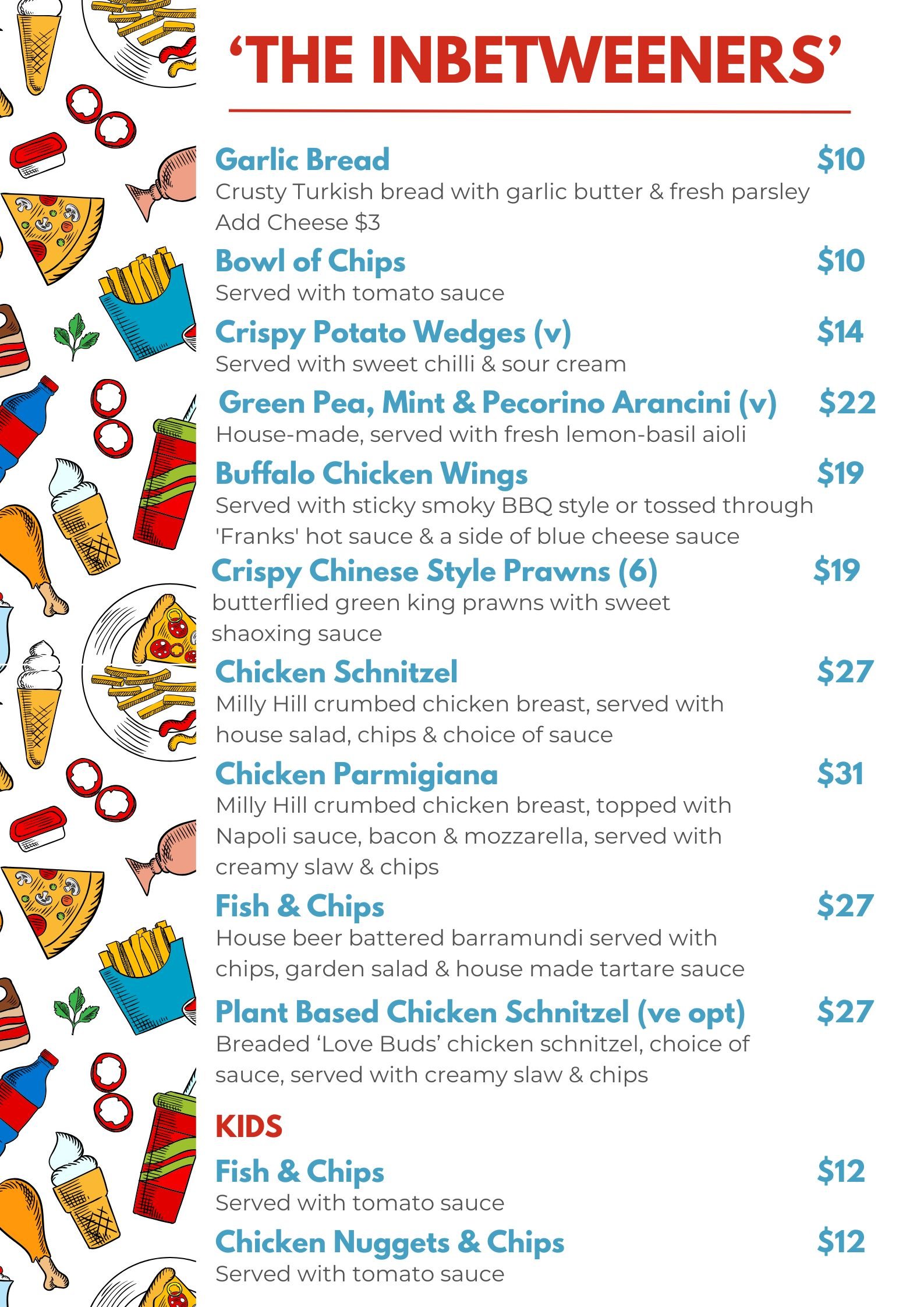 Chicken Schnitzel’s are only $21.90 and includes a schooner of Tooheys or a House wine or soft drink, and served with chips, salad and a sauce of your choice.